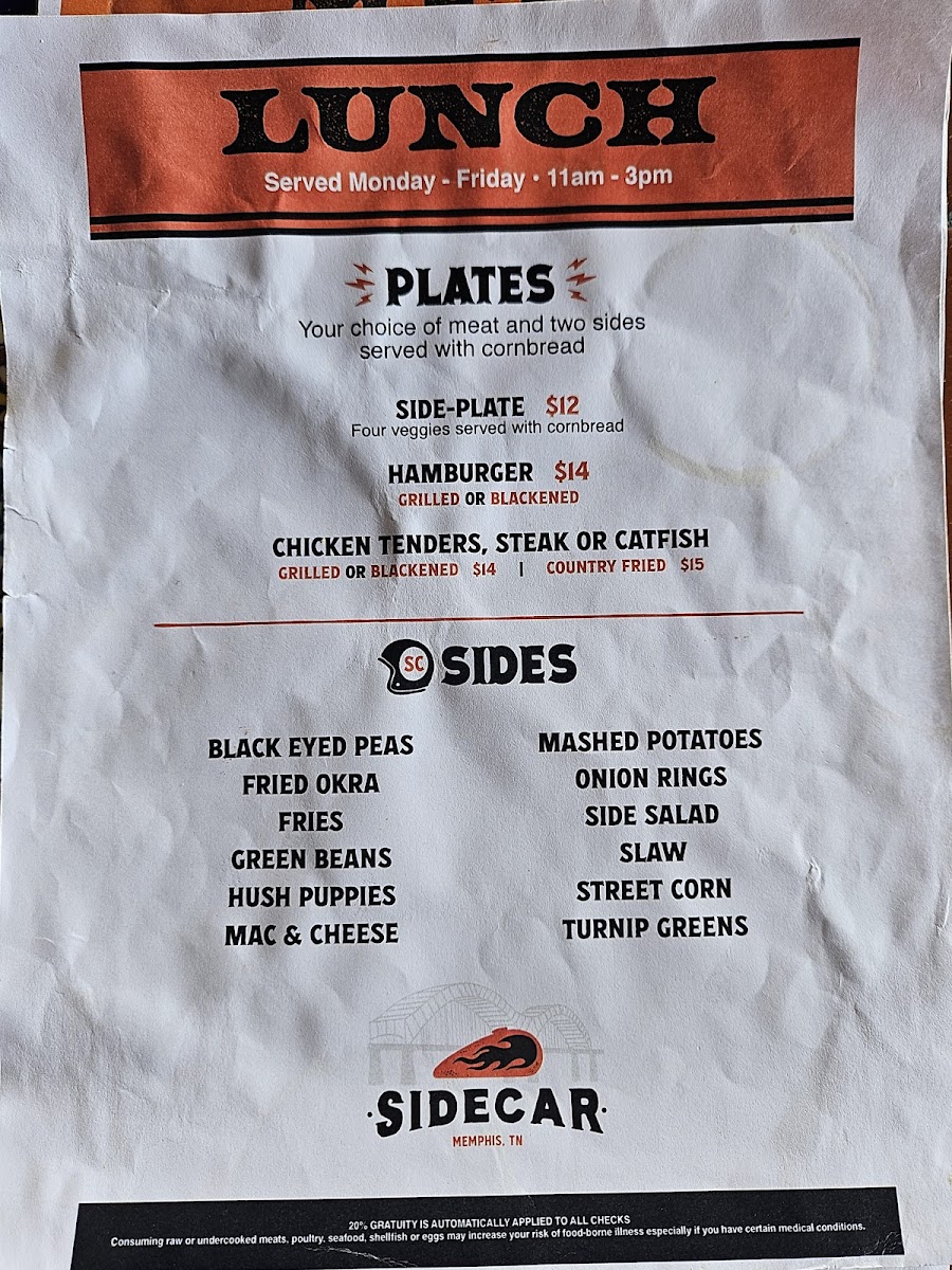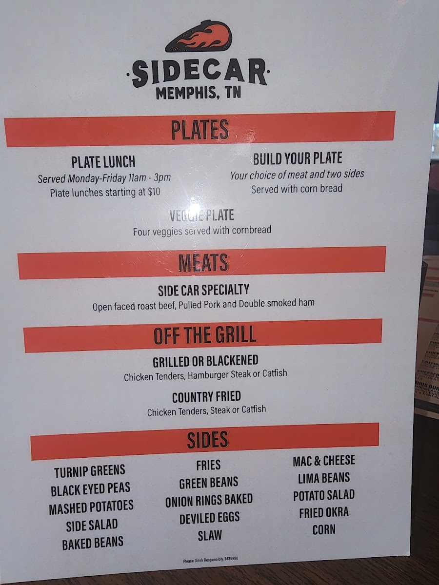 Veggie of the Day | Mac & Cheese | Lima Beans | Baked Potato Salad | Fried Okra | Sweet Peas | Fries | Tater Tots | Fried Corn | Green Beans | Onion Rings | Deviled Eggs | Turnip Greens | Black Eyed Peas | Slaw | Mashed Potatoes | Side Salad | Baked Beans